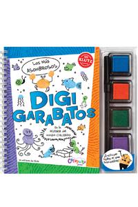 ?Digigarabatos? trae cuatro almohadillas entintadas (azul, naranja, violeta y verde). Esas son las pinturas. Los pinceles están a mano: los pulgares. Para los toques finales que le darán personalidad a cada obra, solo se necesitan unos trazos del rotulador negro que hemos incluido.